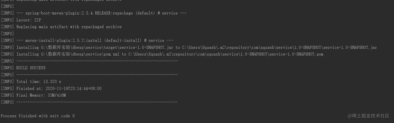 打开最后service打包生成的jar包的文件夹,按住shift同时点击鼠标右键,点击“在此处打开powershell窗口”,输入java -jar {文件名},即可运行jar包。