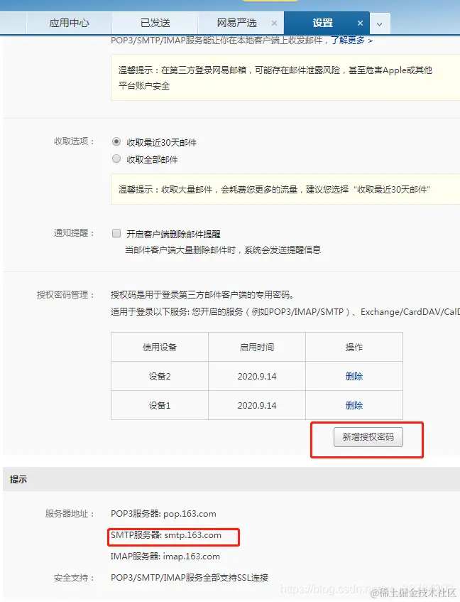 1.先开通邮件的POP3/SMTP/IMAP,拿到授权密码,注意,不是邮箱密码
