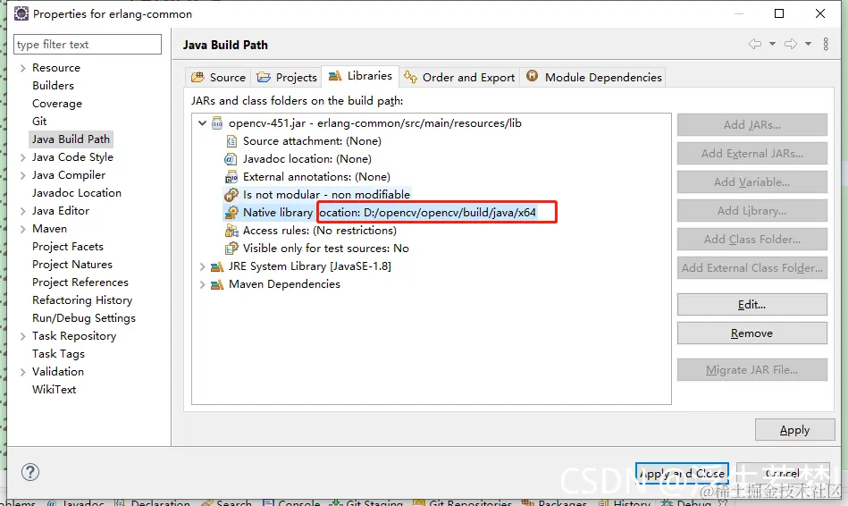 4.若报错no opencv_java451 in java.library.path,请按照下面设置。双击选中下载opencv中得路径