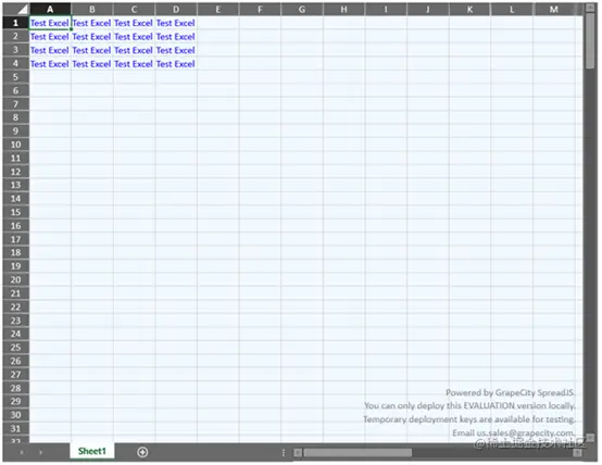 sheet.getCell(3, 0).text('Test Excel').foreColor('blue');