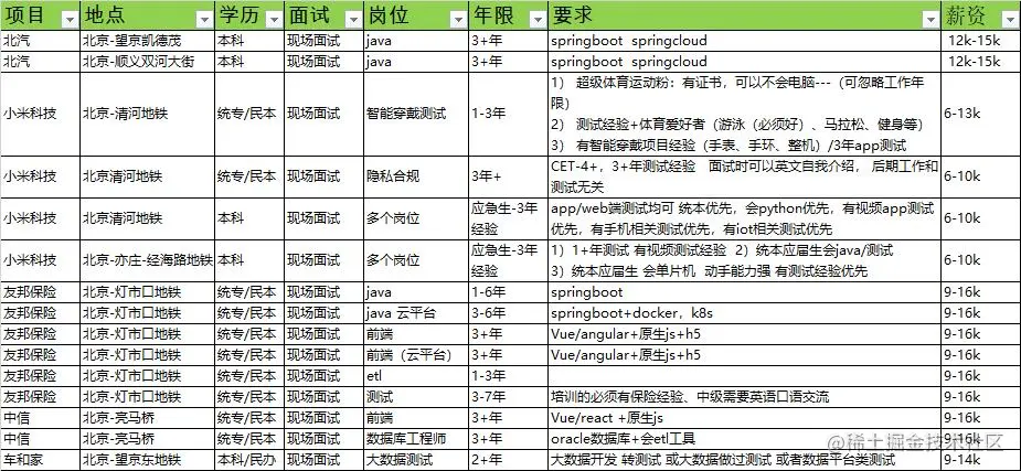 分享一下看到的面试招聘情况: