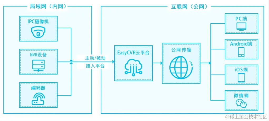 EasyCVR平台是我们支持协议最全面的视频平台,它能支持标准协议包括国标GB/T28181、RTMP、RTSP/Onvif协议,以及厂家的私有协议与SDK,如:海康Ehome协议、海康SDK、大华SDK等。