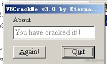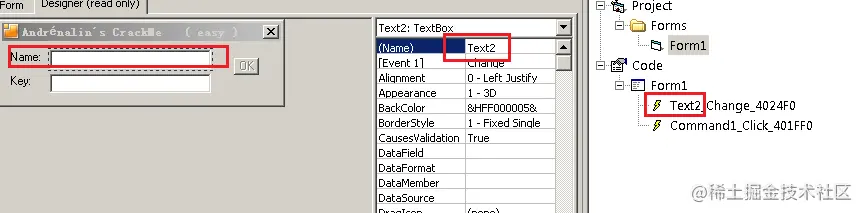 loc_004022CB: If (Form1.Text1.Text = var_34) Then // 如果输入的Key == var_34则成功