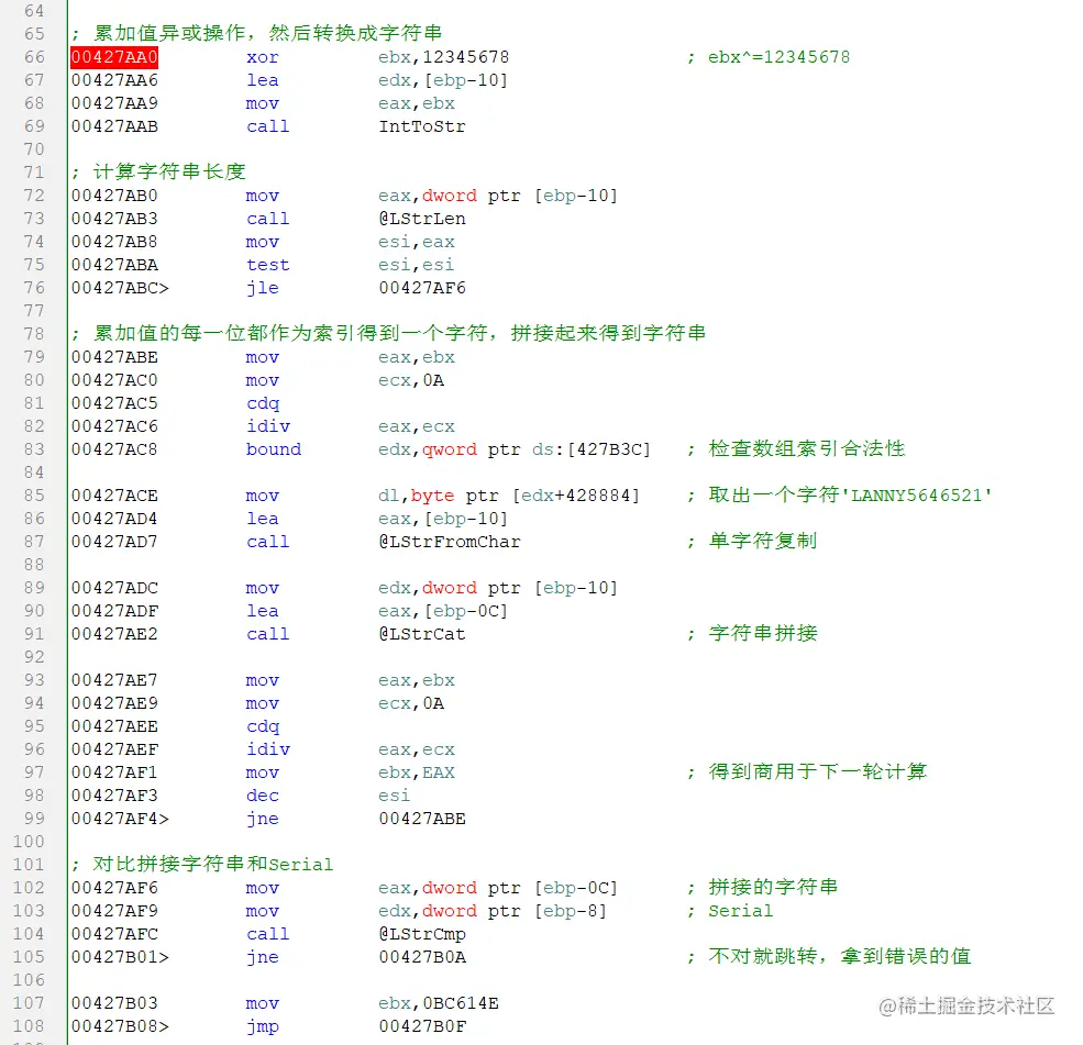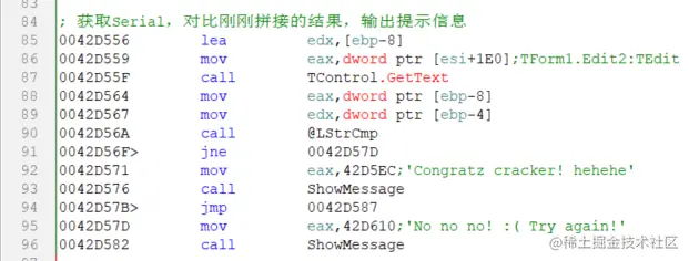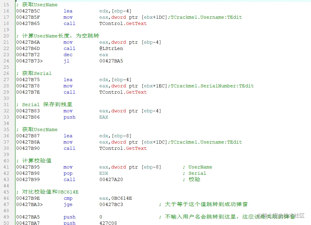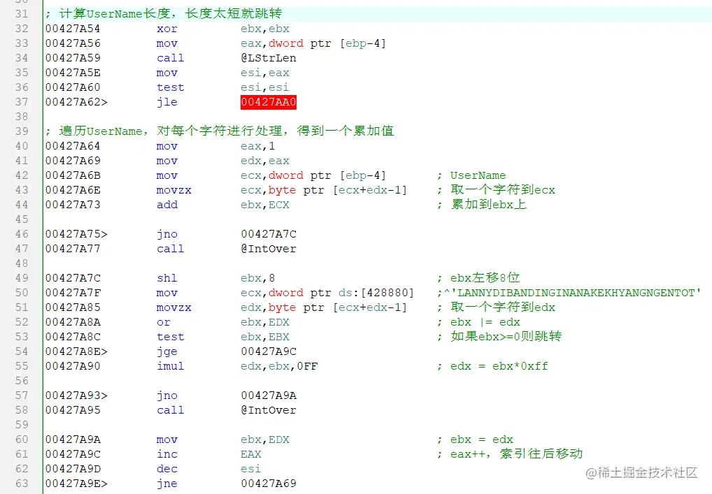 接下来将获取的UserName和Serial作为参数,调用校验函数00427A20