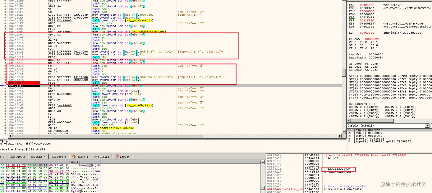 loc_00402254: Mid(var_34, 9, 1) = "-" // 修改其中一个值