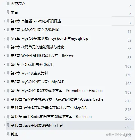 第10章和第11章讲解如何通过堆内缓存、堆外缓存(MapDB)和磁盘缓存解决MySQL数据库性能不佳的问题。