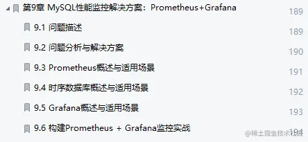 第9章讲解如何通过Promet heus和Grafana监控MySQL节点。