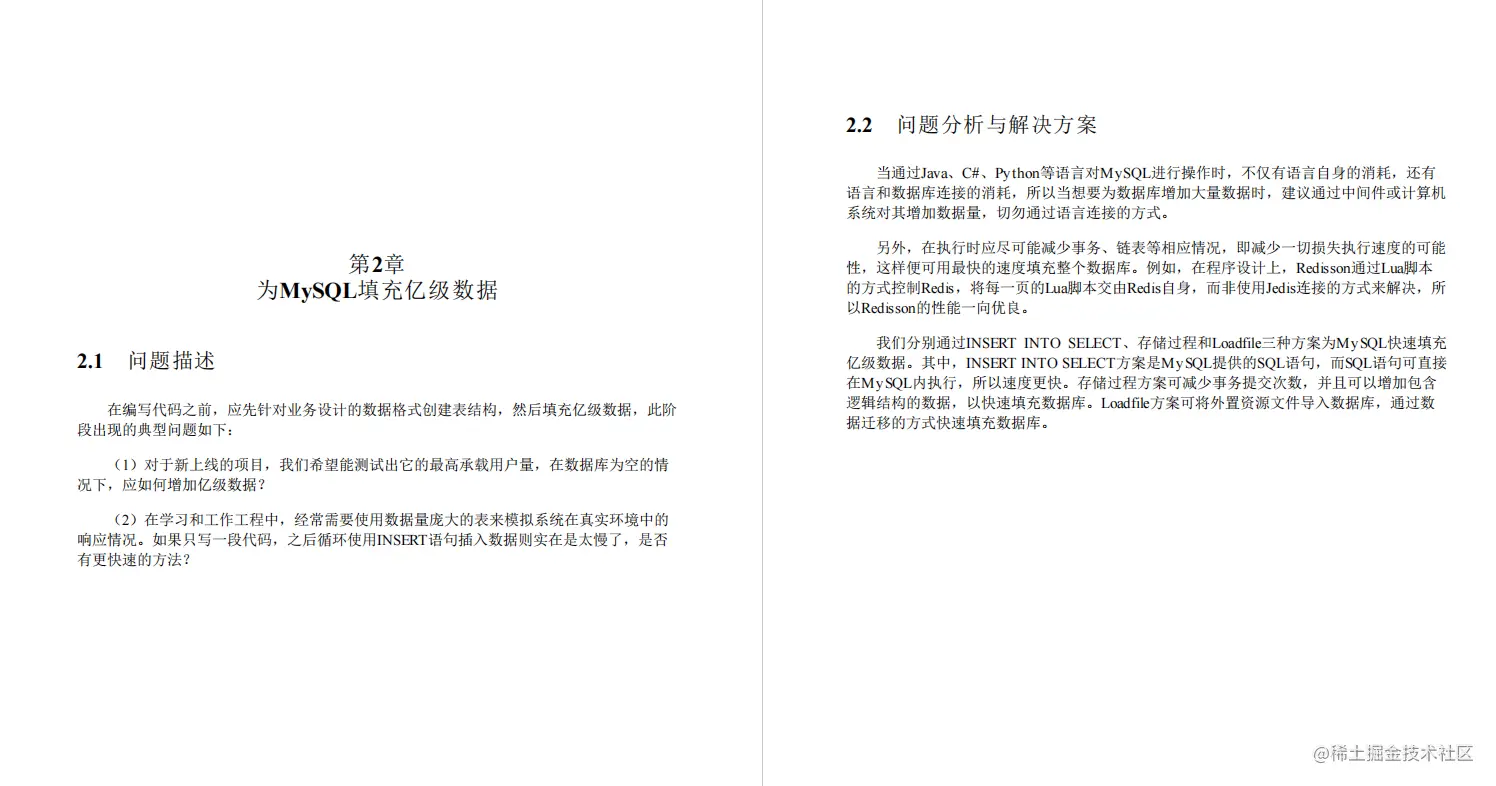 第2章和第3章讲解在编写代码之前,如何高效地为My SQL填充亿级数据,并对My SQL进行基准测试,以便在之后编程时有所比较。