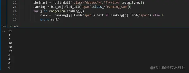 rank = ranking[j].find('span').text if ranking[j].find('span') else 0
