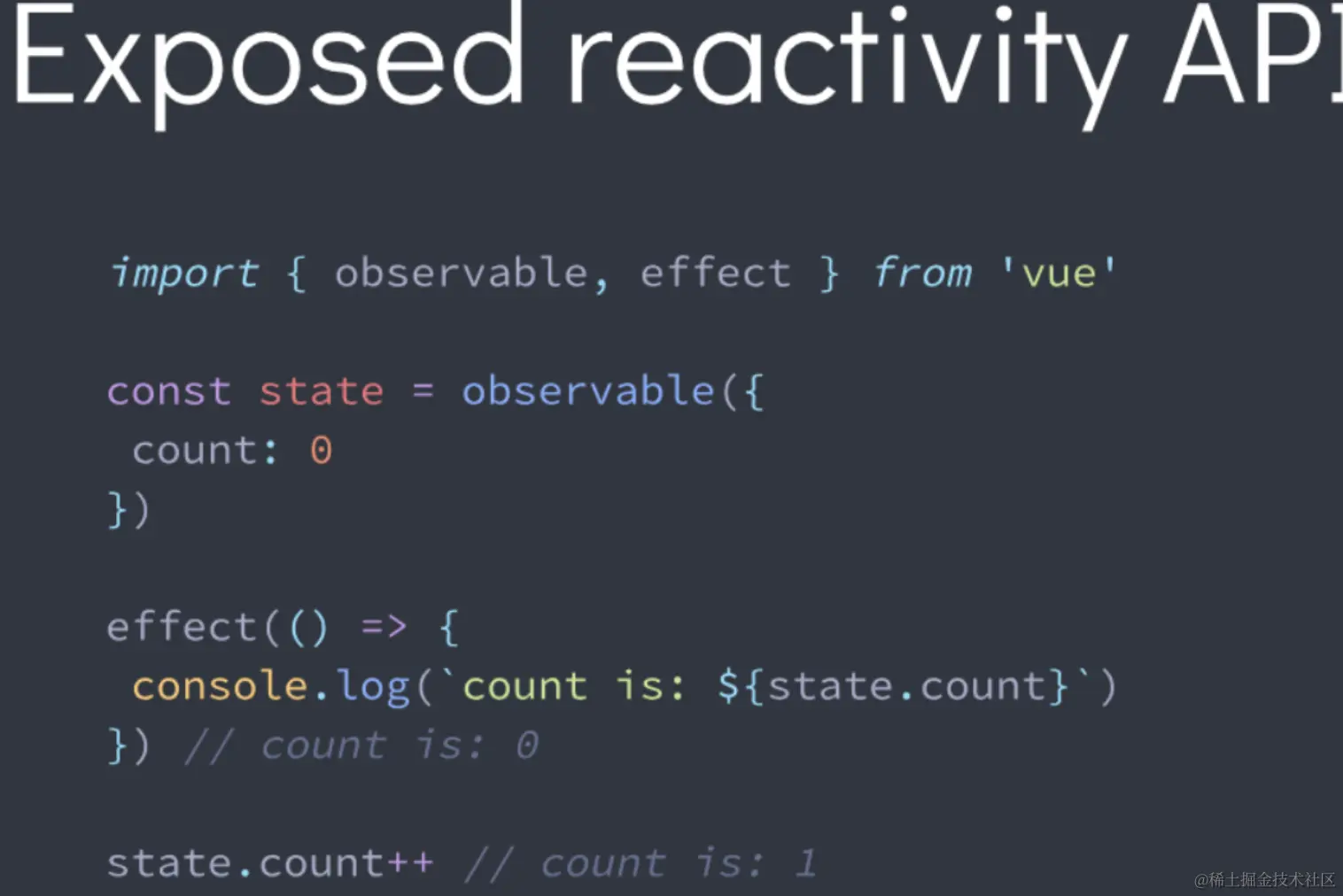 显而易见,Vue Composition API 使得 Vue3 的开发风格更接近于原生 JavaScript,带给开发者更多地灵活性