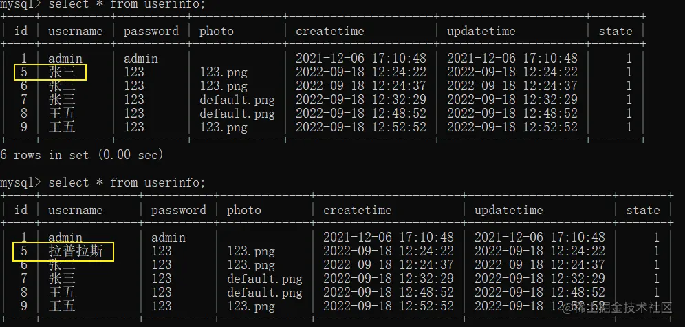 // 返回值就表示这个操作,影响到了几行,就相当于在控制台里输入 sql 之后,得到的数字