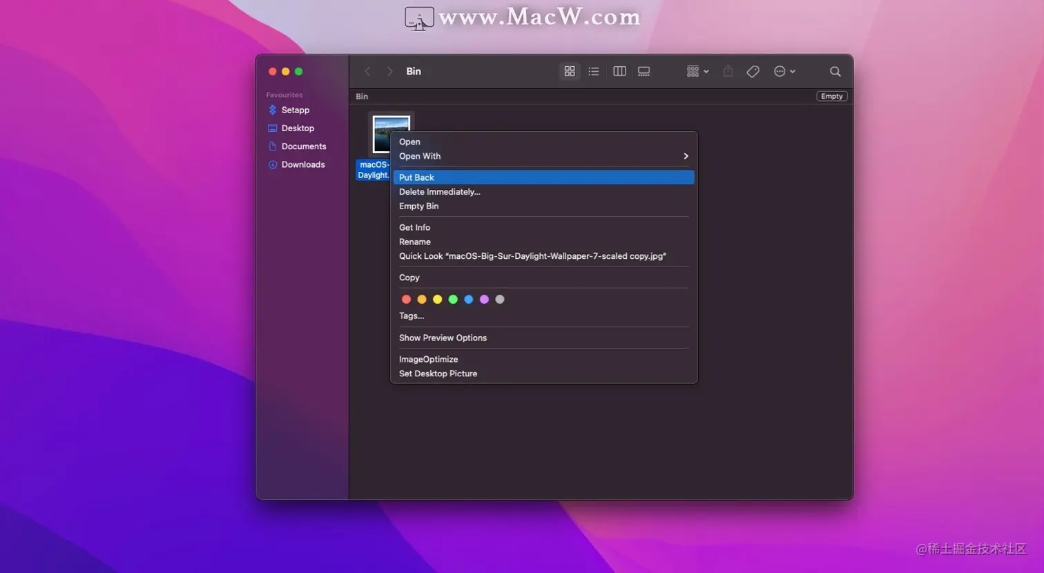 4.选择“放回”到macOS访达里面
