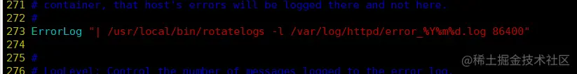 ErrorLog "| /usr/local/bin/rotatelogs -l /var/log/httpd/error_%Y%m%d.log 86400" #分割错误日志