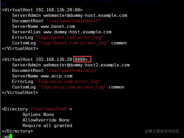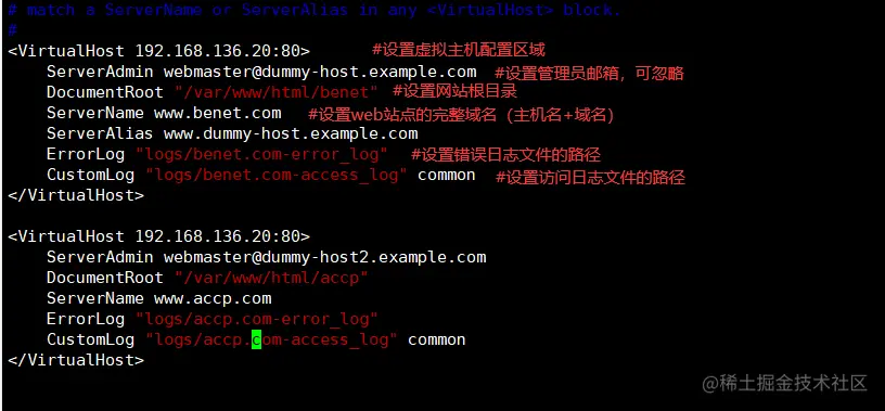 vim /usr/local/httpd/conf/extra/httpd-vhosts.conf #源码编译安装的虚拟主机配置文件路径