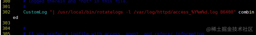 CustomLog "| /usr/local/bin/rotatelogs -l /var/log/httpd/access_%Y%m%d.log 86400" combined #分割访问日志