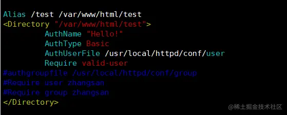 #authgroupfile /usr/local/httpd/conf/group #设置用于保存组账号和密码的认证文件的路径