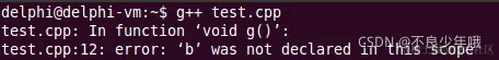 在C++的编译环境下,就会报如下的错误。 这是因为编译器会对const常量进行一个类型检查和作用域检查,所以b只在f()内部有效,在f()外部无效。
