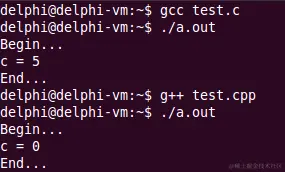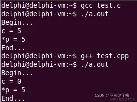 下图为该程序分别在C语言和C++编译环境在的运行结果: