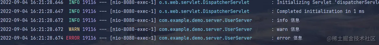 因为 Spring Boot 中内置了日志框架 Slf4j,所以咱们可以直接在程序中调用 slf4j 来输出日志。