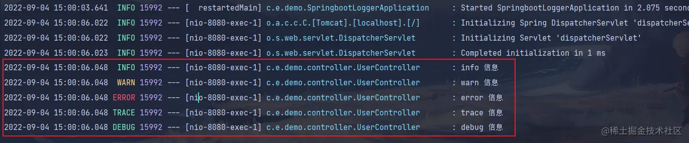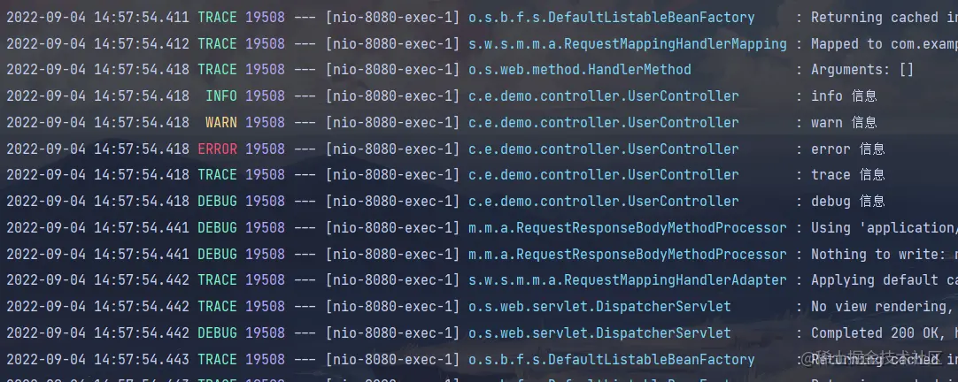 演示结果:只有 UserController 类的日志级别被设置为了 trace,其他的类不影响
