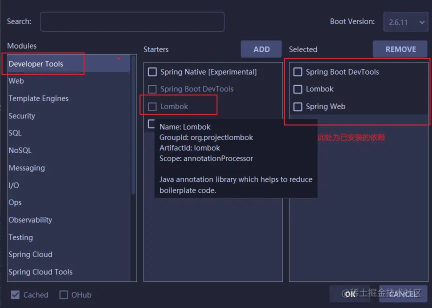 此处为 lombok 的依赖: