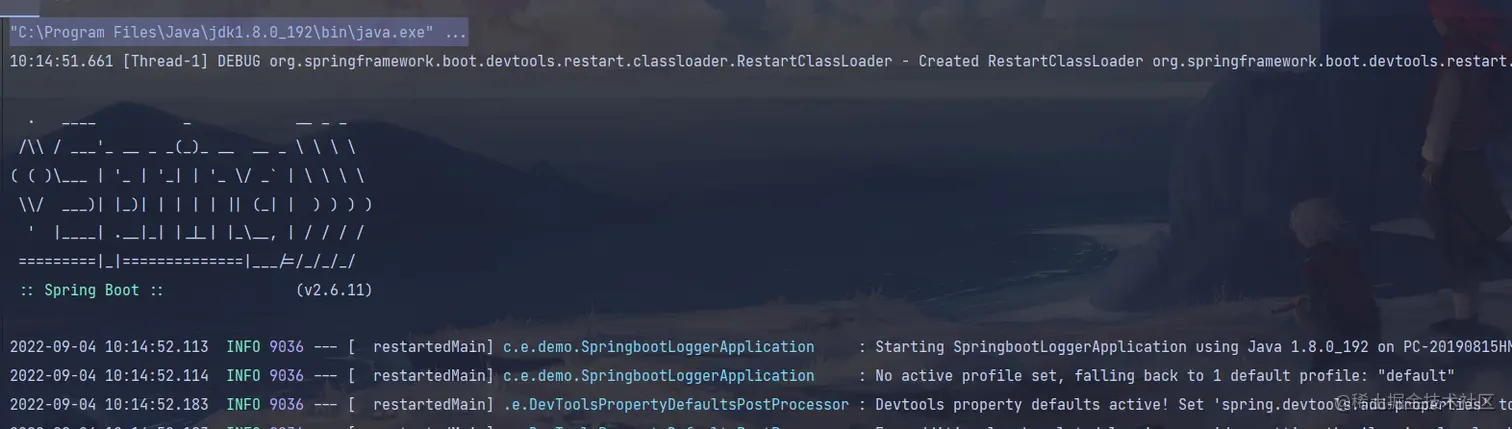 Spring Boot 项目在启动的时候默认就有日志输出,如下图所示: