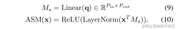 Adaptive spatial mixing 为了使查询对采样特征的空间结构具有适应性,引入了自适应空间混合 (ASM) 过程。如图3所示,ASM 可以描述为首先转置通道混合特征矩阵,并将动态 kernel 应用于其空间维度上,如公式 (9) 和 公式 (10)。