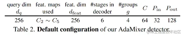AdaMixer 检测器中的默认超参数如表2所示。