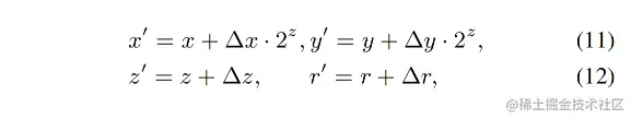 查询位置向量在每个阶段结束时由另一个 FFN 进行更新,如公式 (11) 和 公式 (12),其中 (Δx,Δy,Δz,Δr) 是由图4中较低的小 FFN 块产生的。