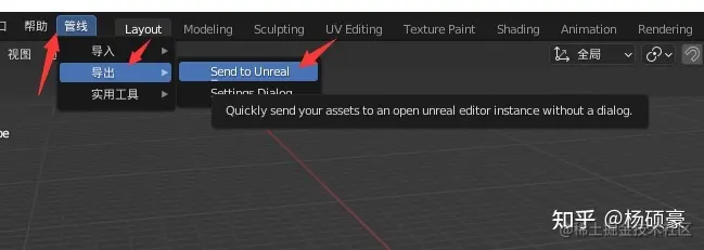 使用 Send to Unreal 插件可以把 Blender 里面的资产直接传输到虚幻引擎里面。