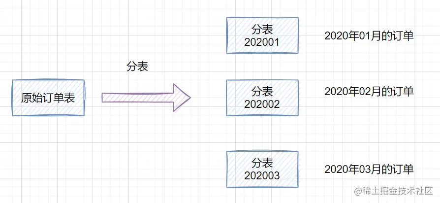 - 分表:就是一个数据库表分成多个表。