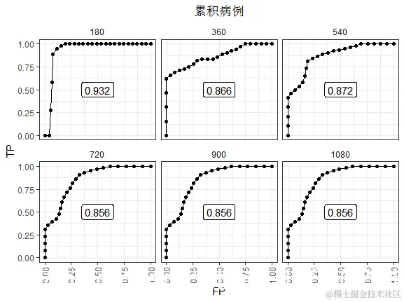 总之,我们研究了时间依赖的ROC及其R实现。累积病例ROC可能与风险 (累积发生率)预测模型的概念更兼容 。新发病例ROC可用于检查时间零标记在预测后续事件时的相关性。