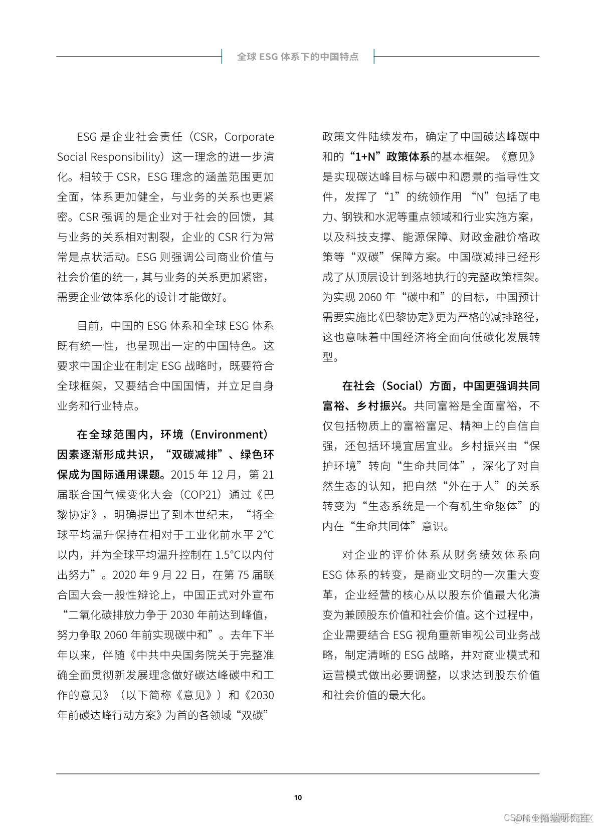 目前,中国的ESG体系和全球ESG体系既有统一性,也呈现出一定的中国特色。这要求中国企业在制定ESG战略时,既要符合全球框架,又要结合中国国情,并立足自身业务和行业特点。
