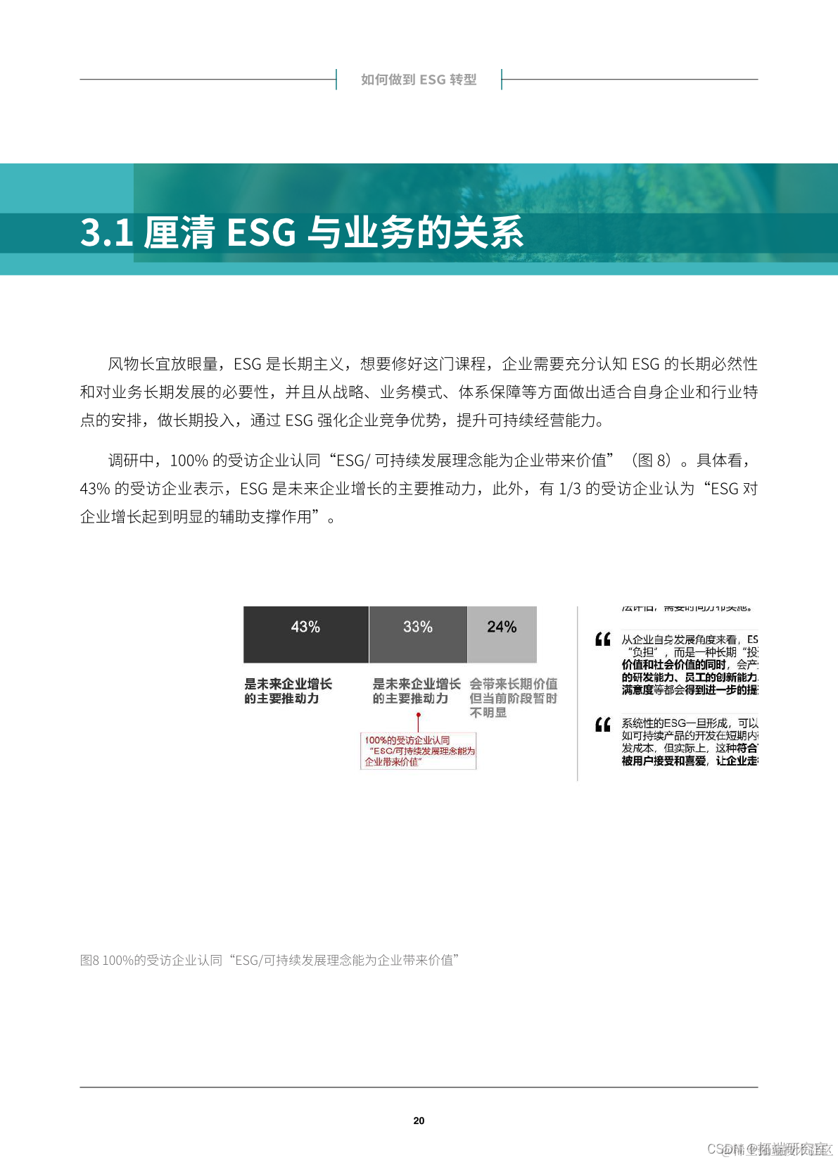 需要强调的是,在ESG转型过程中,企业要坚持长期主义,通过ESG强化竞争优势,从而提升可持续经营能力。本次研究中,我们还深度访谈了七家不同行业的企业,并将分享各家企业所采取的ESG举措和相应的成果及未来目标,为企业ESG转型提供有意义的借鉴和与启示。