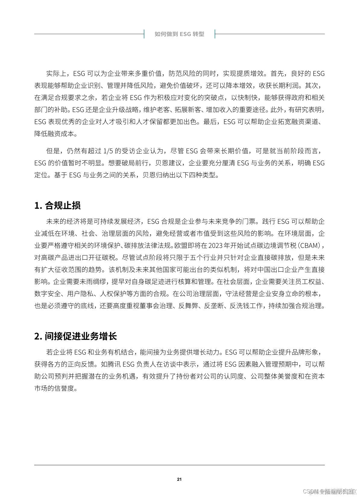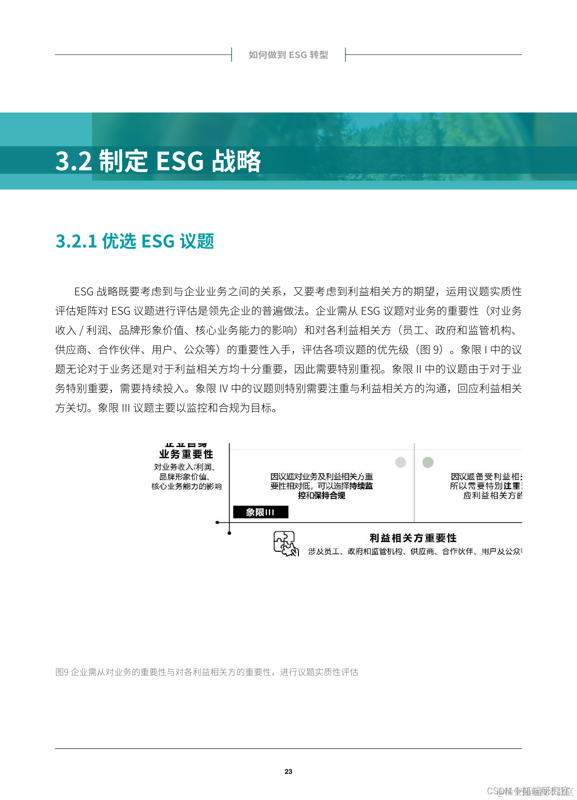 对企业的评价体系从财务绩效体系向ESG体系的转变,是商业文明的一次重大变革。这个过程中,企业需要结合ESG视角重新审视公司业务战略,制定清晰的ESG战略,并对商业模式和运营模式做出必要调整,以求达到股东价值和社会价值的最大化。