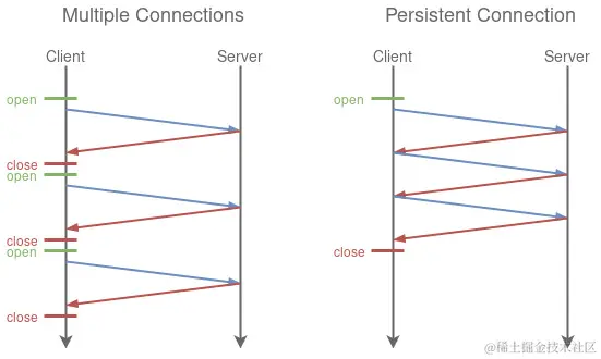 引入了持久连接( persistent connection),即TCP连接默认不关闭,可以被多个请求复用,不用声明Connection: keep-alive。长连接的连接时长可以通过请求头中的