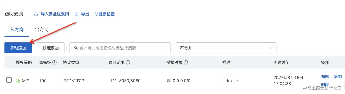 就可以手动在访问规则中添加要暴露的端口号了