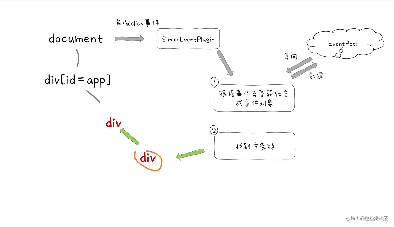 SyntheticMouseEvent) 。 - 如果对象池里有这个类型的实例,则取出这个实例,覆盖其属性,作为本次派发的事件对象(事件对象复用),若没有则新建一个实例。