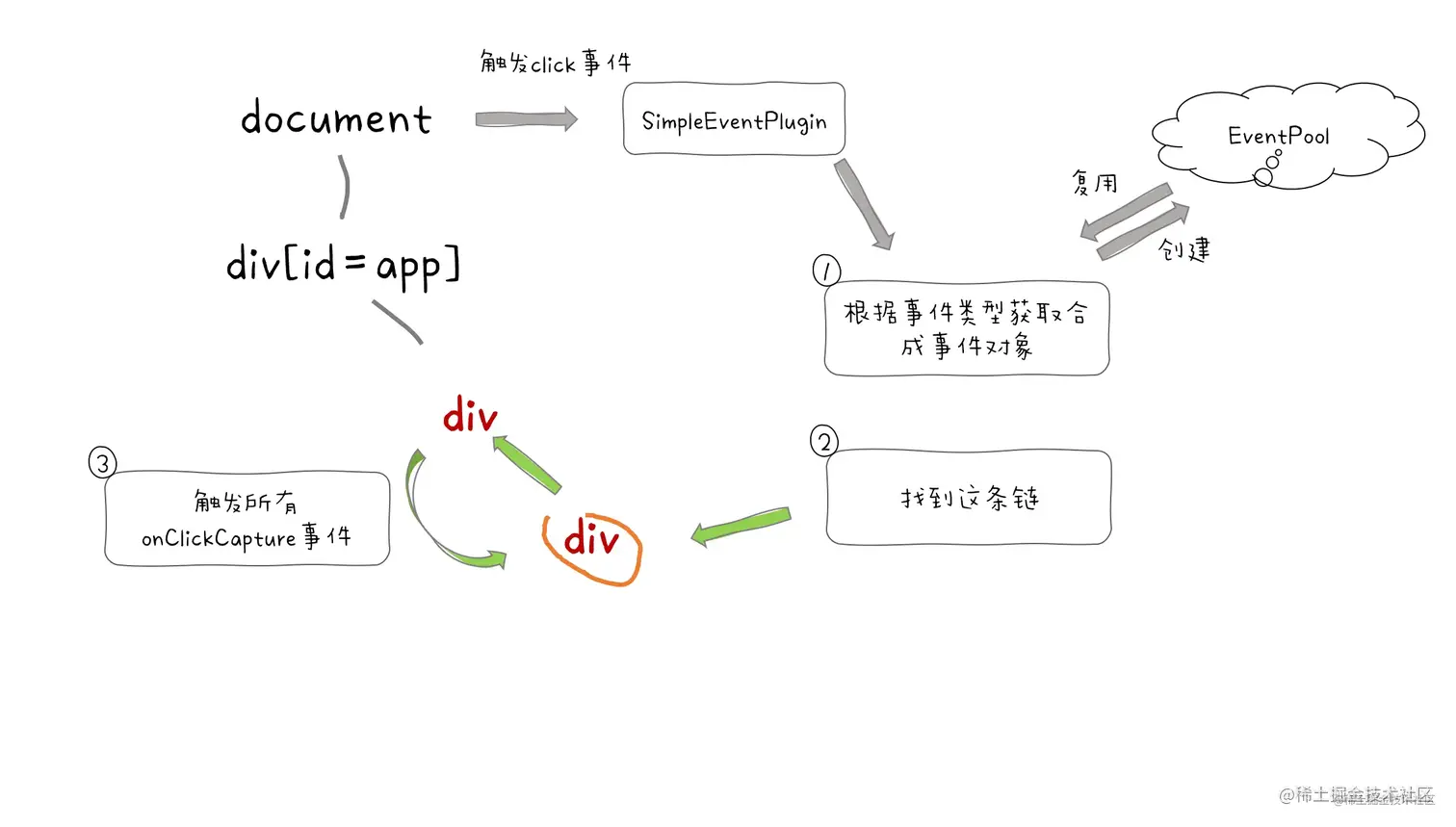 最后我们就可以轻松理解 React 事件系统的架构图了