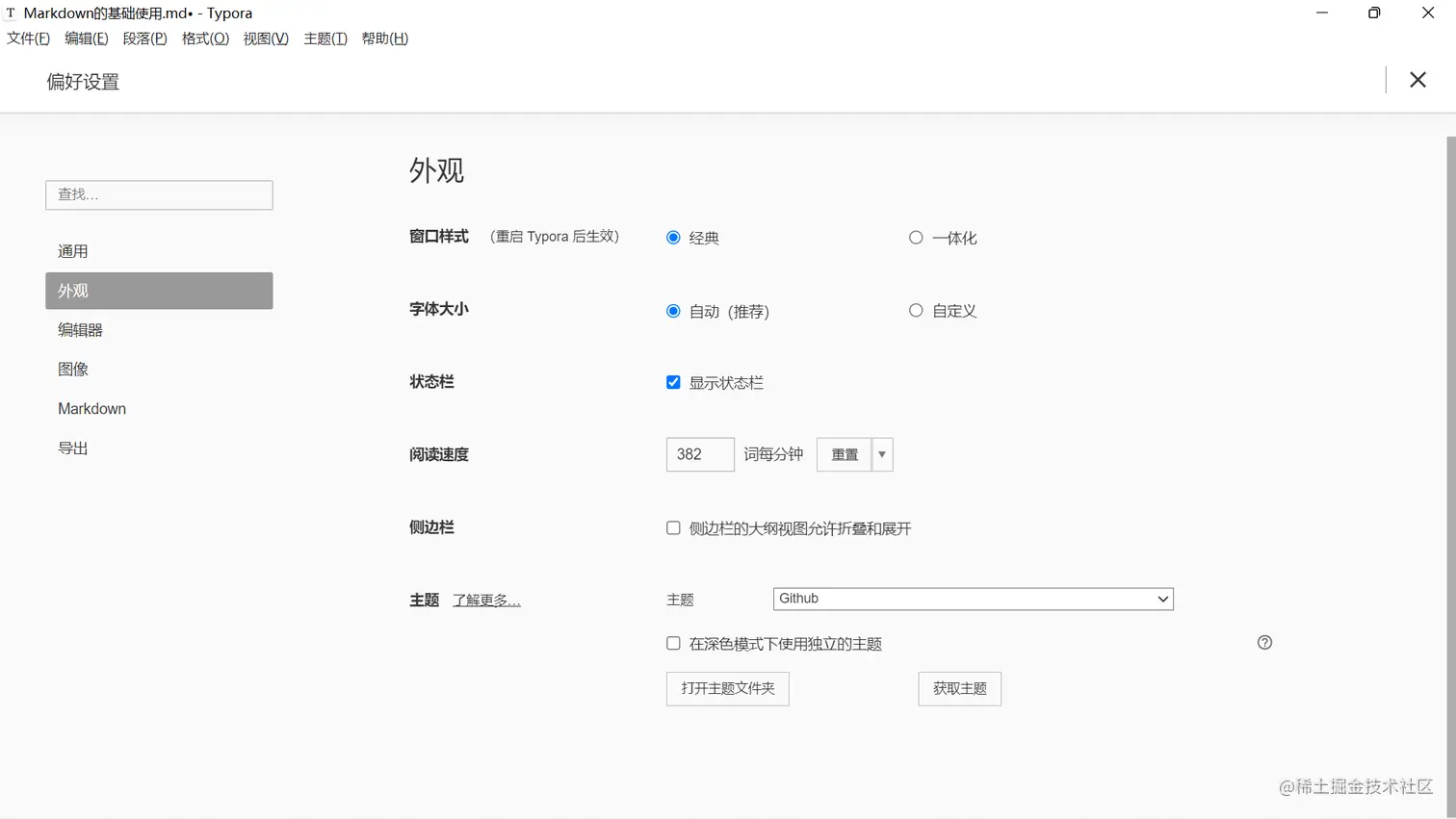 温馨提示:偏好设置,需要重启Typora软件才能生效。