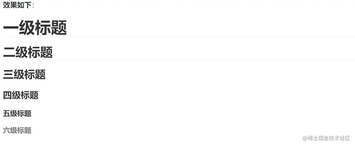 使用 # 号可表示1-6级标题,一级标题对应一个 # 号,二级标题对应两个 # 号,以此类推。