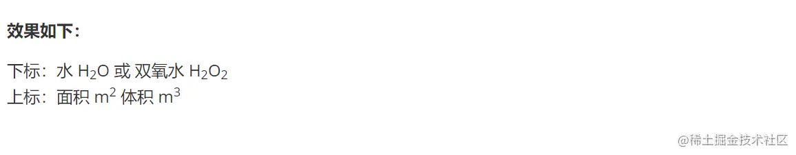 上标:面积 m^2^ 体积 m^3^