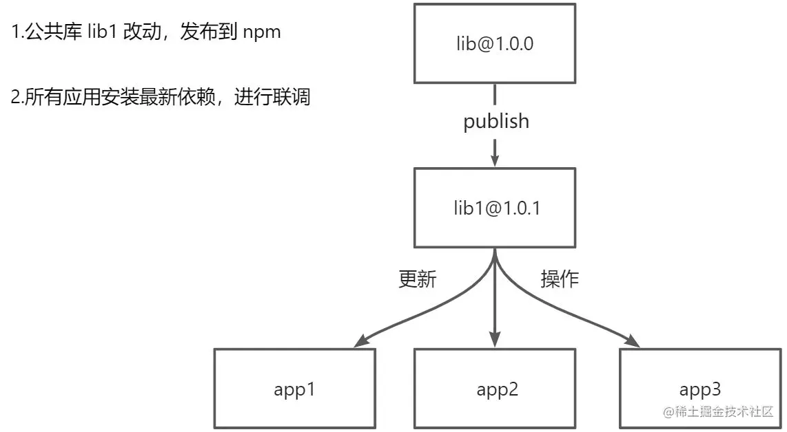 - 项目构建问题。引入了公共库之后,公共库的代码都需要打包到项目最后的产物中,导致产物体积偏大,构建速度相对较慢。当然,