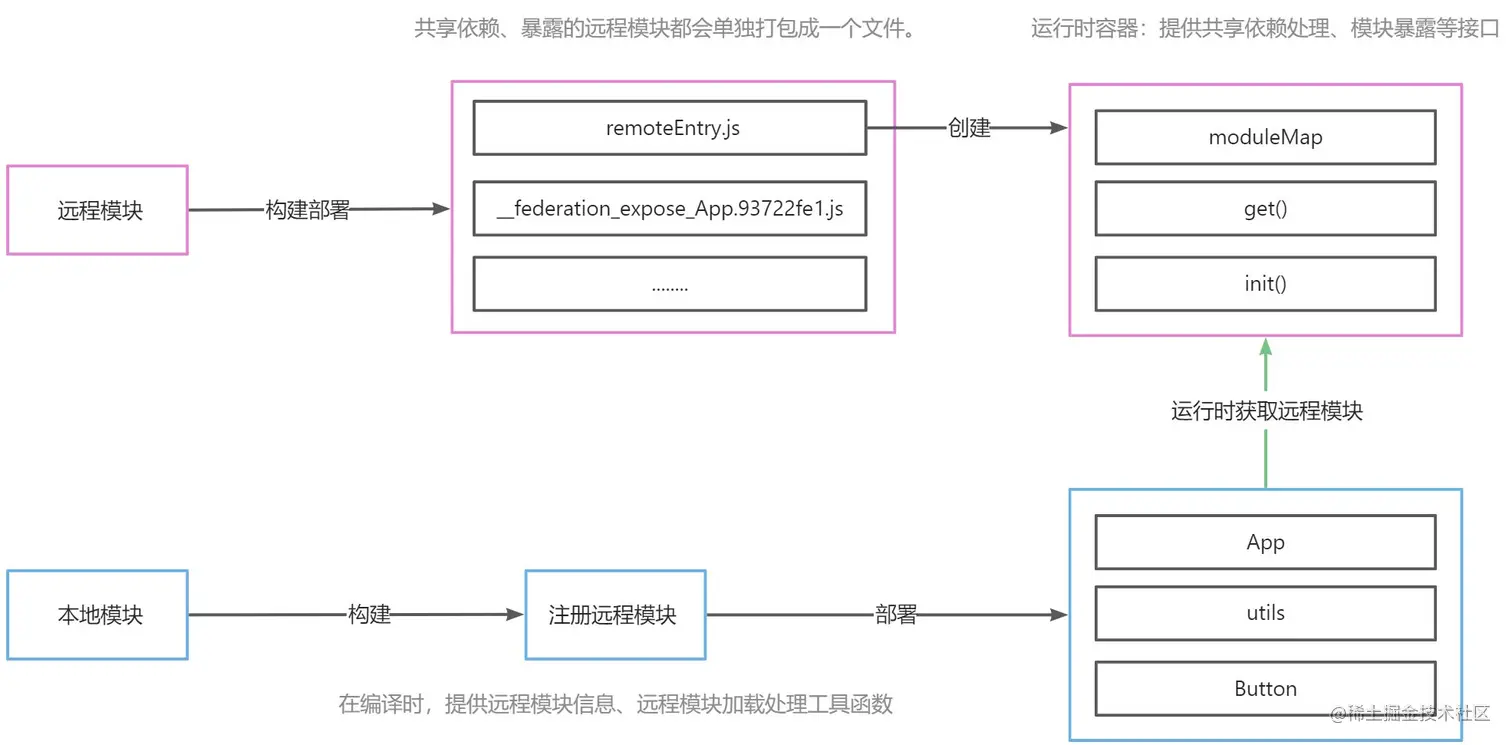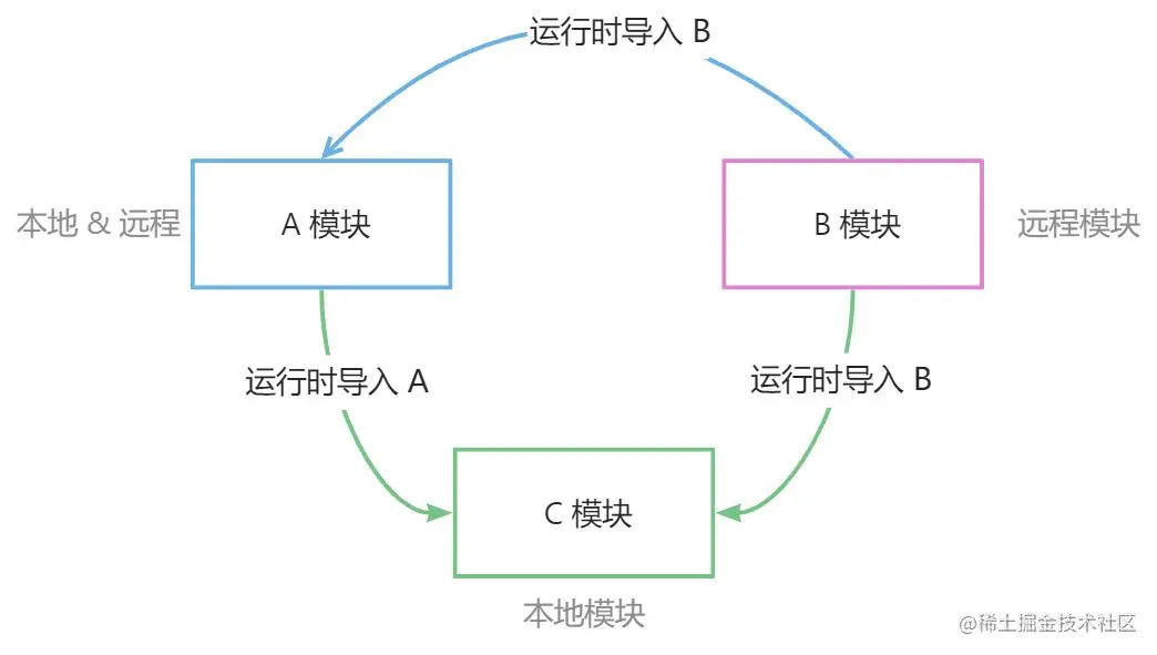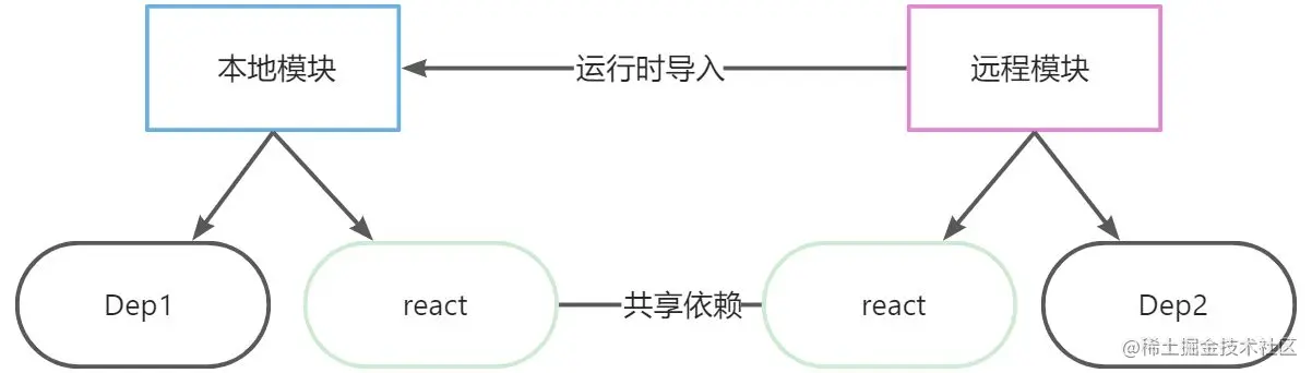 本地模块就是当前构建流程中的一部分,而远程模块是在本地模块运行时进行导入,本地模块和远程模块之间又可以共享公共的依赖。
