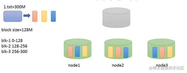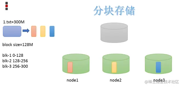 大数据使用场景下,GB、TP级别的大文件是常见的。当单个文件过大的时候,如何提高传输效率?通常的做法是分块存储:把大文件拆分成若干个小块(block 简写blk),分别存储在不同机器上,并行操作提高效率。