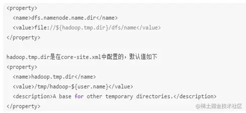 其中的dfs.namenode.name.dir是在hdfs-site.xml文件中配置的,默认值如下: