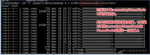 namenode元数据存储目录由参数:dfs.namenode.name.dir指定,格式化完成之后,将会在$dfs.namenode.name.dir/current目录下创建如下的文件: