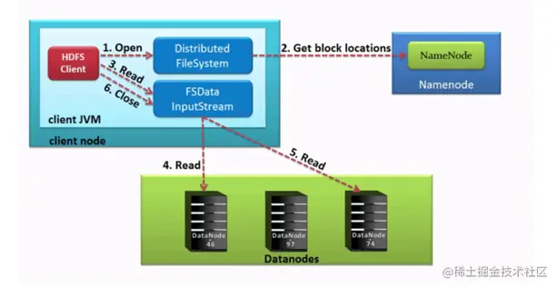 - 客户端从流中读取数据时,块是按照打开DFSInputStream与DataNode新建连接的顺序读取的。它也会根据需要询问NameNode来检索下一批数据块的DataNode位置信息。一旦客户端完成读取,就对FSDataInputStream调用close()方法。