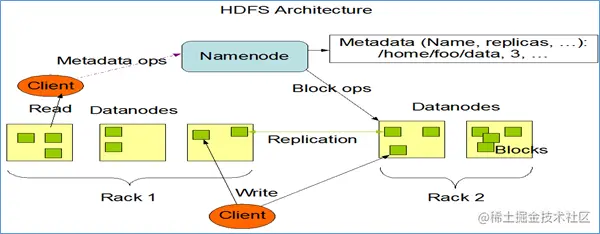 在HDFS中,元数据主要指的是文件相关的元数据,由NameNode管理维护。从广义的角度来说,因为NameNode还需要管理众多DataNode节点,因此DataNode的位置和健康状态信息也属于元数据。