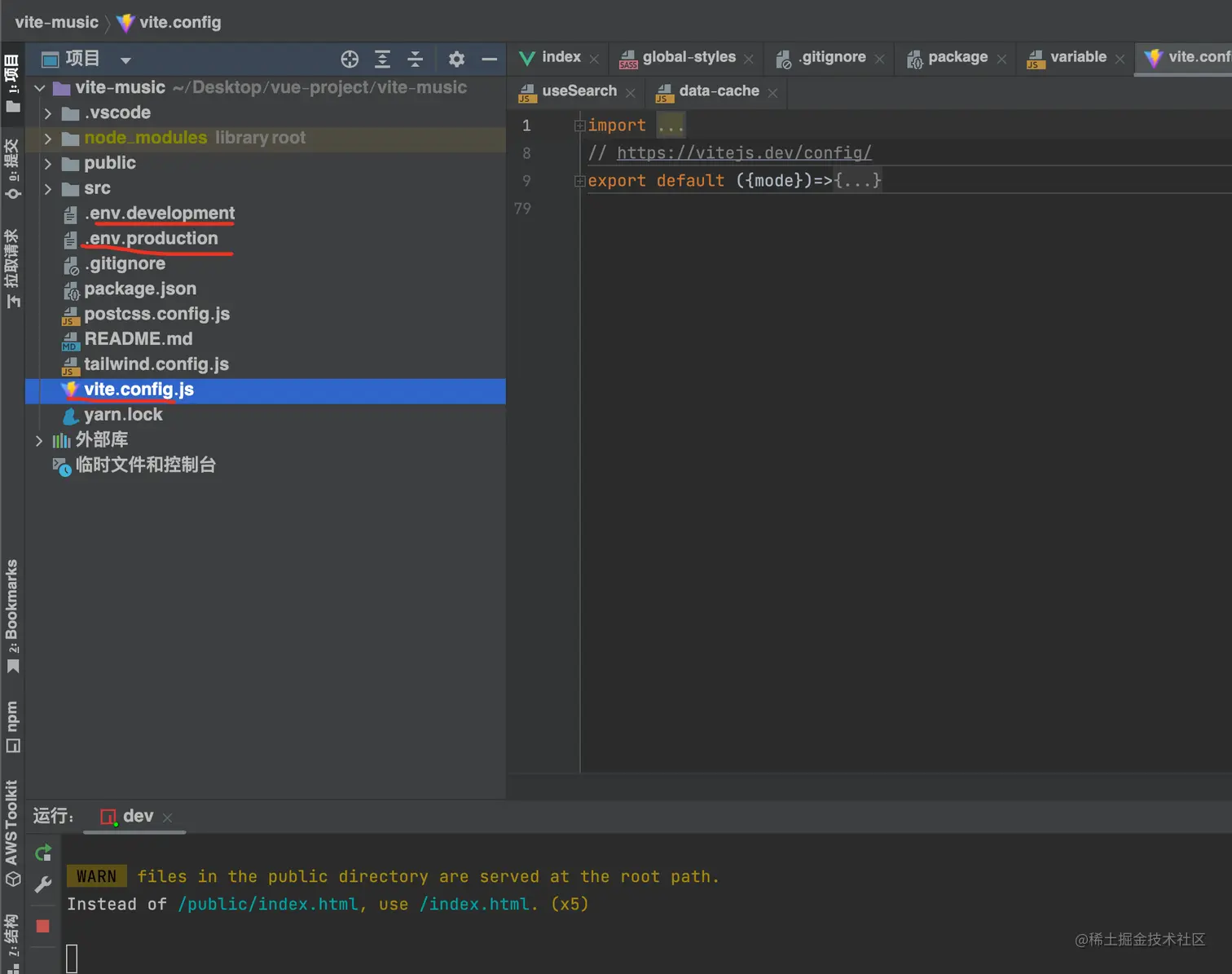 .env.development和.env.production 用于存放比如接口服务器地址,一些类型等